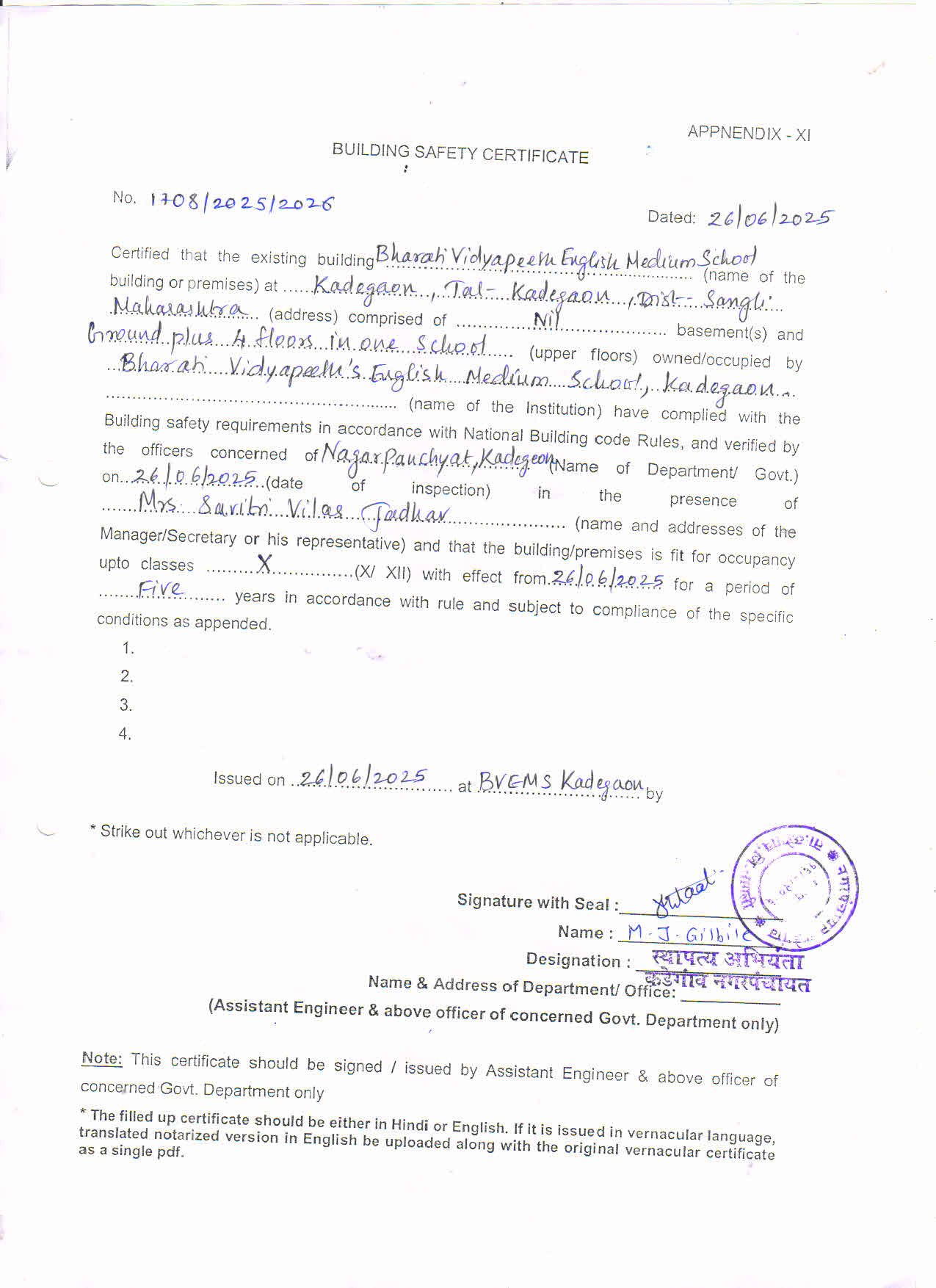 - Building safety Certificate