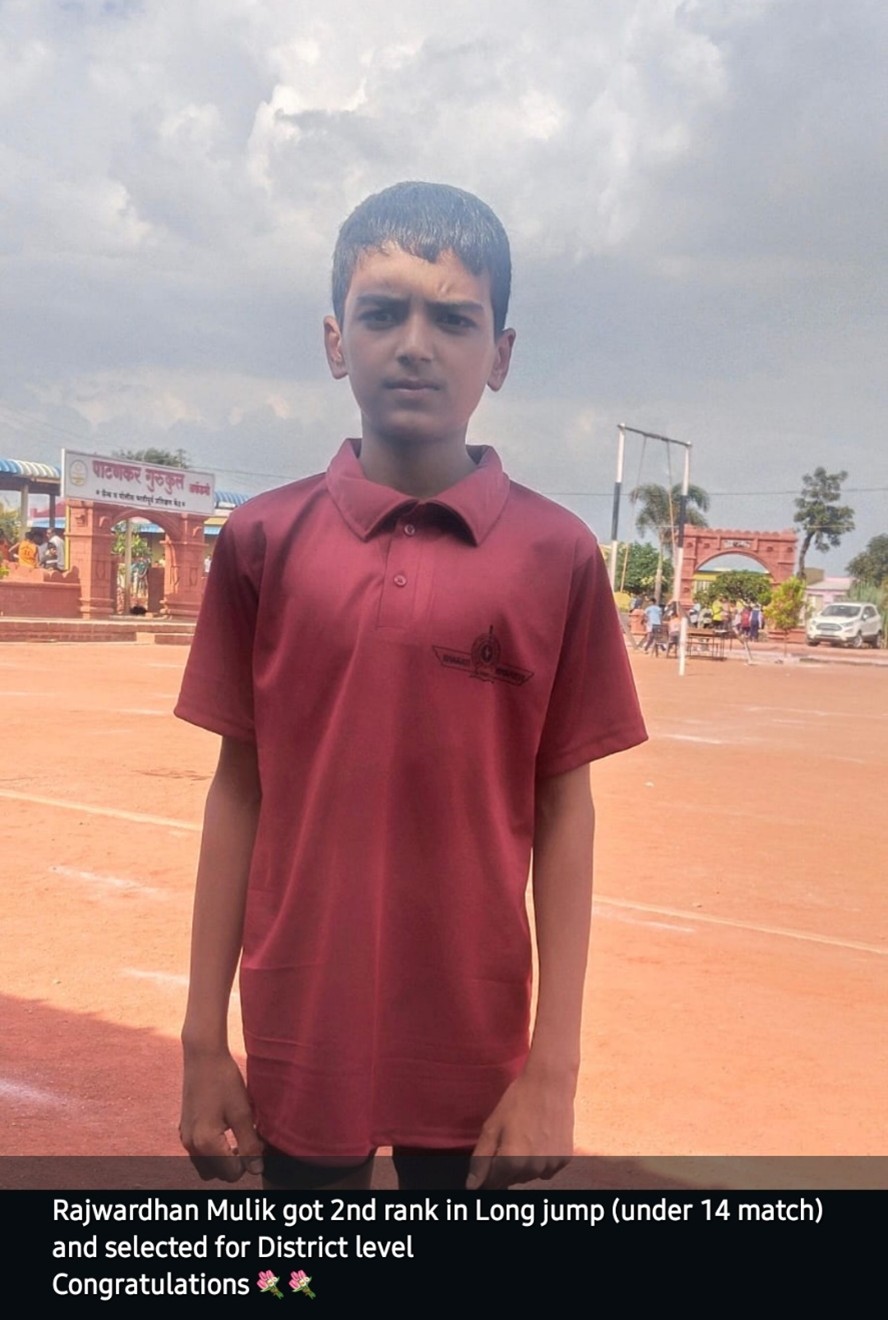 - Rajvardhan Mulik (secured 2nd rank in long jump under14) and selected for district level.